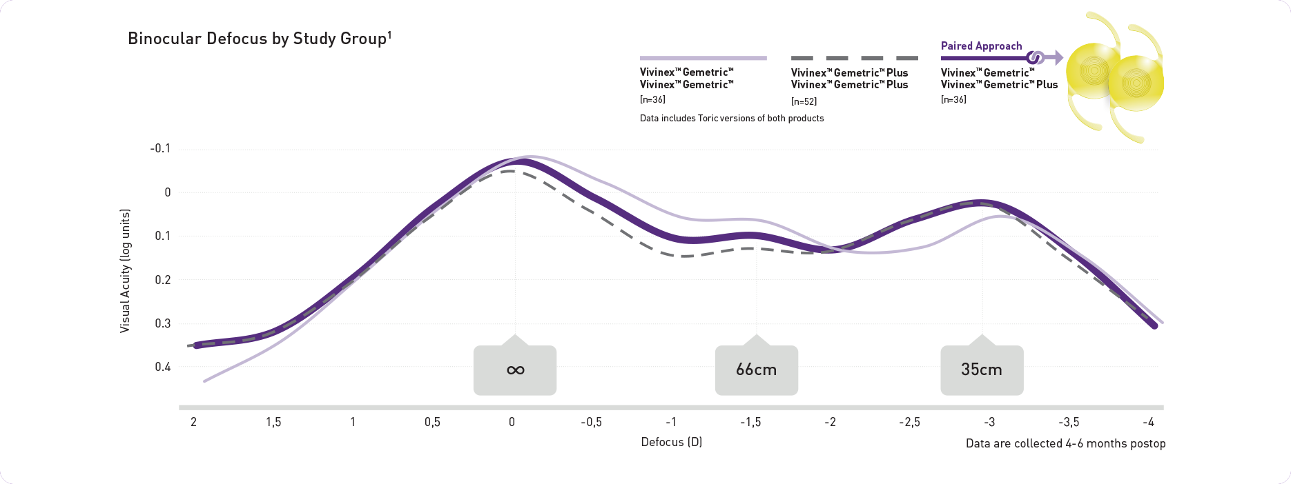 High self-reported spectacle independence and patient satisfaction when pairing VivinexTM GemetricTM and VivinexTM GemetricTM Plus 6 months after surgery (n=36)1